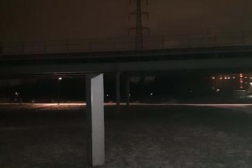 Not much are known about it other than it is made in wood and painted in a silver color, but rumors tell that one artist named "TONK", made it, also, his/her name is written on the lower end of the monolith. It is close to the subway bridge and on a green snowy grass between the suburbs of Gubbängen and Hökarängen in Stockholm.